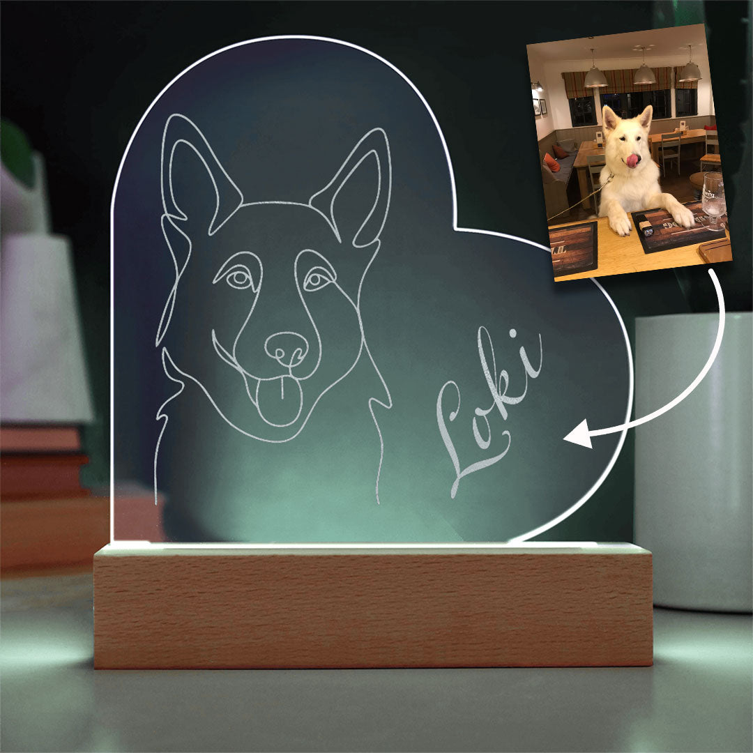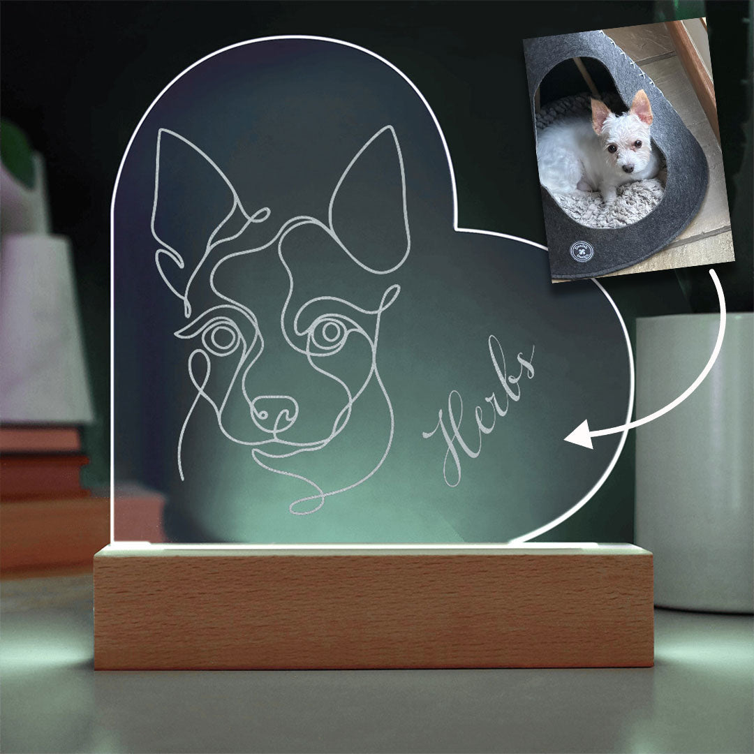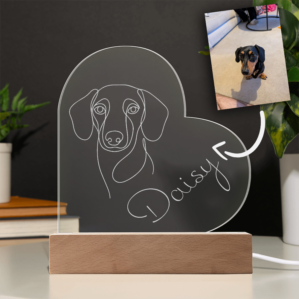 Each plaque is fully custom-made using high-quality acrylic and a solid wood base. It’s a one-of-a-kind piece of modern décor—turning your beloved pet into a glowing work of art.
